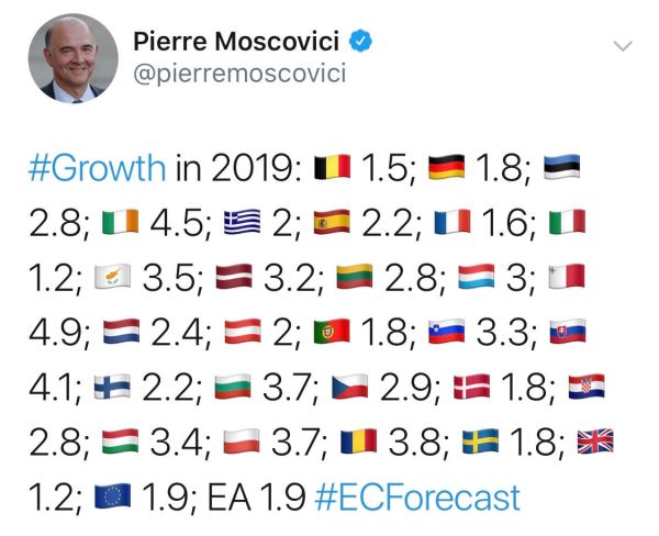 La Commissione Europea rettifica, come tutti gli altri organismi nazionali ed internazionali, le previsioni del Governo: le stime sulla crescita sono inferiori, passando dall’ 1,5% all’ 1,2%, conseguentemente il deficit è destinato a salire fino al 2,9% (invece del 2,4%), sfondando la soglia prevista dalle regole nel 2020, a quota 3,1%. Il rapporto debito/pil non... Continua a leggere →