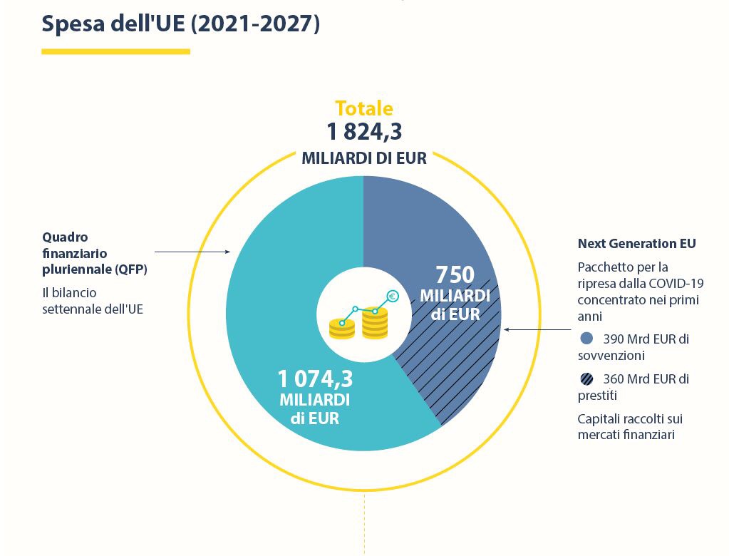 Lo strumento Next generation Eu rappresenta un insieme di fondi supplementari, straordinari e temporanei, abbinati alla programmazione del Quadro Finanziario Pluriennale 2021 – 2027.
